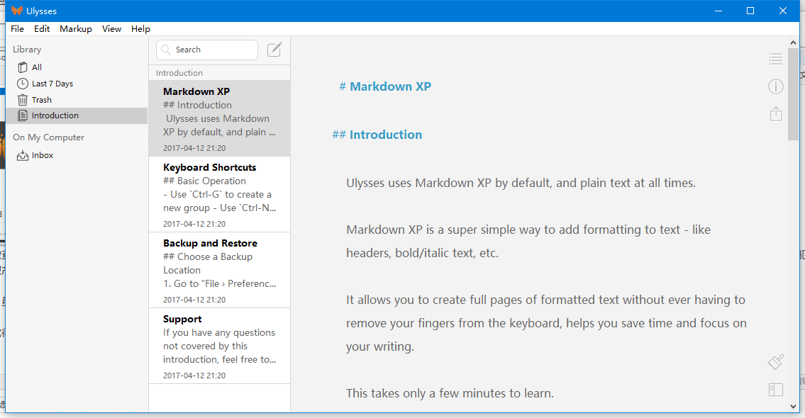 但个人觉得吧,并不一定要借 Ulysses 的名声才能发挥,靠自己的实力也可以有名声的。毕竟 Windows 这个平台,是优质软件们都看不上的平台,现在也剩下某些专业软件和游戏能够吸引人了。但用心做软件,总会有粉丝的(例如我这种软件狂魔)
