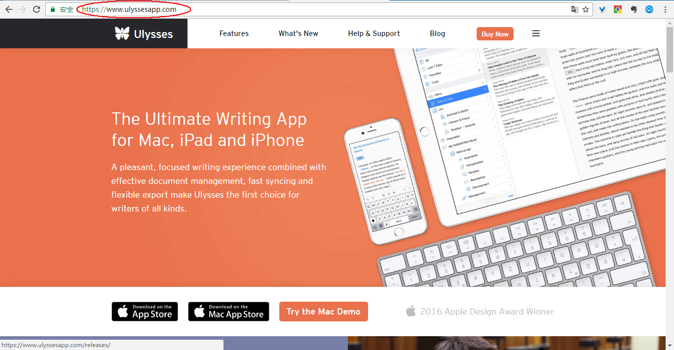 而在 macOS Ulysses 官方的网站。中间的是 ulyssesapp。